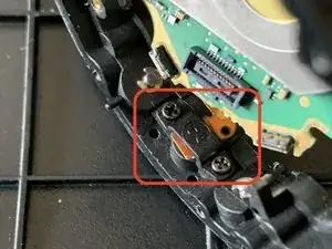 Удалите 2 винта, которые удерживают сенсор между кнопками с правой стороны корпуса