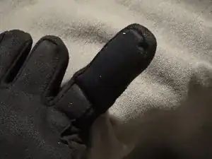 Проблема, которую я не исправил: мой левый указательный палец был хирургически отделён от соседнего, удалив примерно 2,5 см соединительной ткани. Хотя это очень помогло при наборе текста, это означает, что перчатки на этой руке ощущаются перепончатыми — указательный палец имеет меньшую свободу движения.