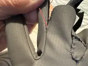 Распорите большую часть стёжков для отсутствующего левого мизинца. Мы используем форшет, который располагался между мизинцем и безымянным пальцем, чтобы закрыть пустоту.