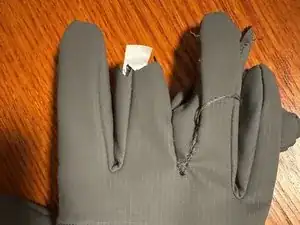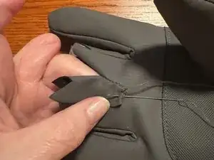 Начните с аккуратного распарывания бокового шва пальца, который нужно укоротить. Используйте ниткоотсос и будьте осторожны, чтобы не порезать ничего, кроме нитки.