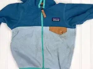 На фото флисовая толстовка Synchilla® имела непонятное пятно возле нагрудного кармана. Быстрая чистка с жидкостью для посуды с последующей стиркой в машине существенно помогла!
