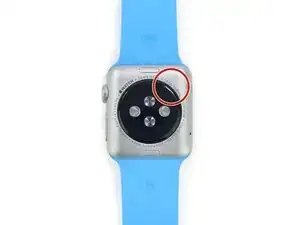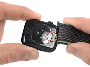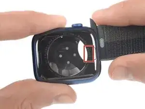 Снимите ремешок с часов. Нажмите кнопку на задней части корпуса, чтобы сдвинуть ремешок и вынуть его.