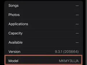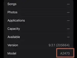 Нажмите на поле «Модель». Вы увидите номер модели, который начинается с «A» (например, A2473).