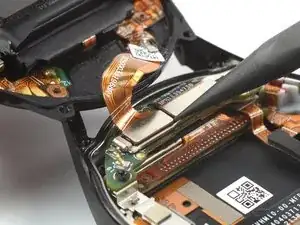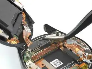 С помощью пинцета снимите черную ленту с кронштейна разъема аккумулятора.