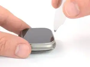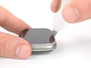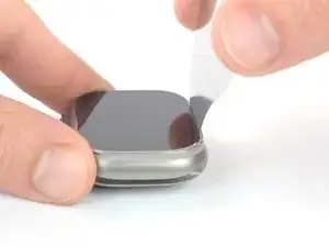 Разместите кончик iFlex вдоль края, противоположного цифровой коронке, и установите его в зазор между экраном и рамкой.