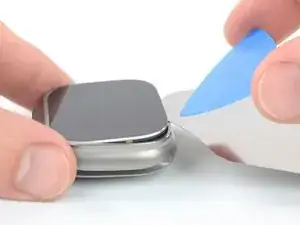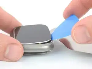 Вставьте медиатор между экраном и рамкой с противоположной от цифровой коронки стороны.