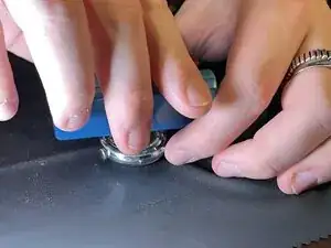 Определите инструмент для снятия крышки. Крышки, которые отщелкиваются, будут полностью гладкими. Если у ваших часов такая крышка, просто проведите ножом для крышек под краем задней панели и приложите усилие вверх, чтобы отщелкнуть её.