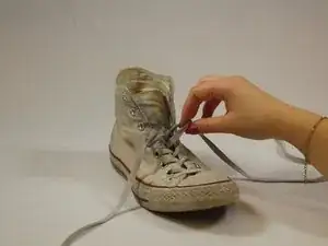 Распустите шнурки, чтобы лучше добраться до отверстия.