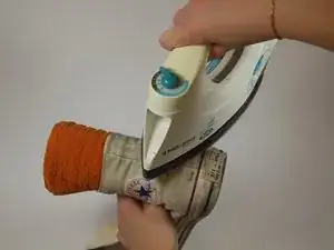 Используйте свернутое полотенце, чтобы поддержать область обуви, где Вы только что проглаживали заплатку.