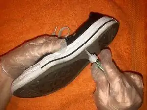 Держите кроссовок Converse закрытым в течение 1 минуты, чтобы клей схватился.
