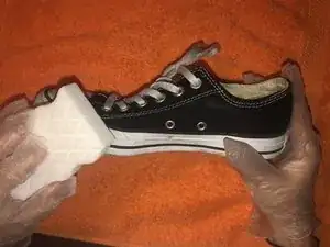 Положите подошву кроссовка Converse плоско на полотенце.