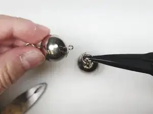 Слегка согните кольцо, открыв его достаточно, чтобы другое кольцо могло соединиться. Не открывайте его полностью, так как закрыть его будет сложно.