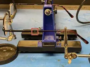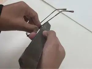 Закрепите дужку очков в тисках.