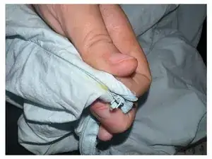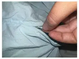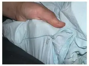 Это обеспечит отсутствие ткани рядом с направляющей. Оттягивание ткани может восстановить функциональность, если она застряла в направляющей. Вам может понадобиться помощь друга, чтобы вы могли работать над замком на следующем шаге.