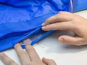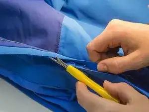 С помощью распарывателя полностью удалите шов клапана куртки на протяжении около 10 см, где велкро расшился.