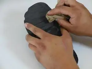 Очистите подошву сандалии влажной тряпкой, чтобы поверхность была свободна от мусора.