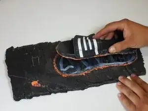 Поместите сандалию подошвой вниз на протектор шины.