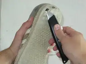 Возьмите шпатель и разгладьте клей, чтобы он был на одном уровне с поверхностью подошвы.