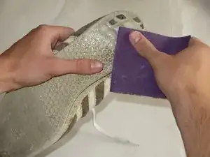 Это поможет клею лучше сцепиться с поверхностью обуви и обеспечит более долговечный ремонт.