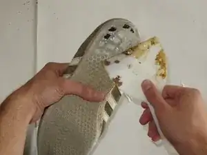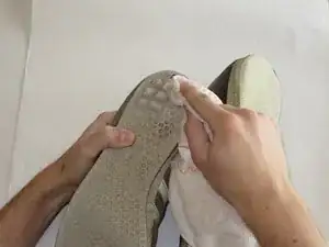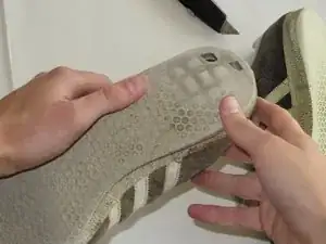 Нанесите клей на внутреннюю часть дыры в подошве ваших Adidas Gazelles.