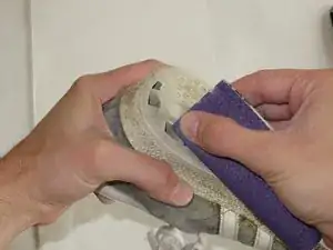 Будьте осторожны, не используйте слишком много воды, иначе вы можете еще больше повредить обувь.