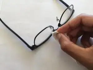 Уберите излишки клея с линз и оправы с помощью бумажного полотенца.