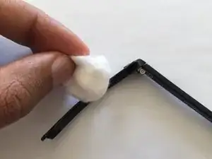 Нанесите обезболивающий спирт на ватный диск и очистите внутреннюю часть верхней части оправы Clubmaster.