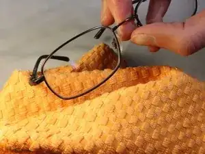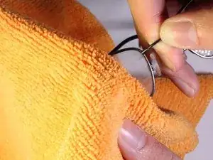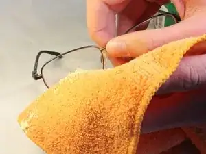 Разместите очки, воск и ткань на ровной поверхности.
