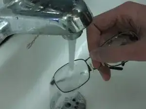Промойте очки тёплой водой в течение 10–15 секунд, чтобы удалить оставшийся воск.