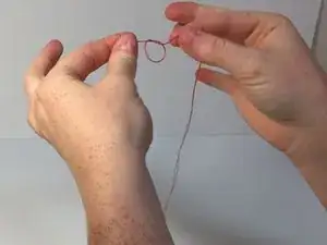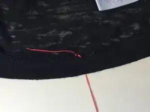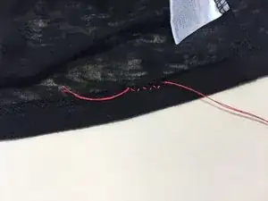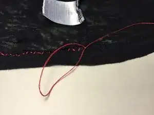 Выберите нитку такого же цвета и оттенка, как и оригинальная нитка. Для наглядности я использую красную вместо черной.