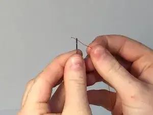 Пропустите нитку через ушко иглы, отверстие на конце иглы.