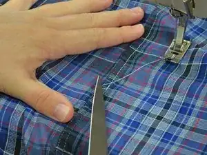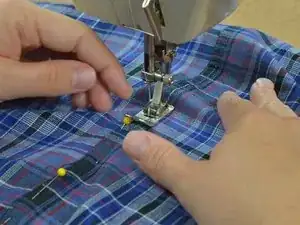 На некоторых вещах имеется две строчки швов. Если на вашей одежде так же, переместите её в швейной машине. Опустите иглу в линию второго шва примерно в том месте, откуда вы начали шить предыдущий шов.