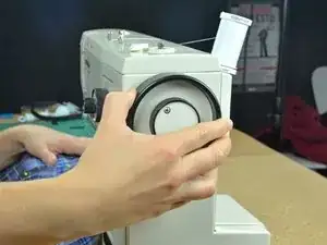 Поверните маховик только в направлении движения машины. При вращении в обратную сторону возможны запутывание нити или нарушение натяжения.