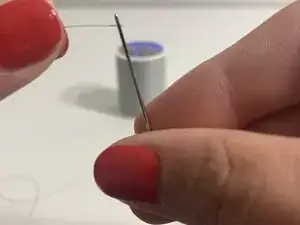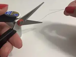 Проденьте нитку через иглу, используйте полиэфирную нитку.