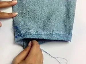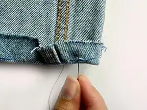 Протолкните иглу через джинсовую ткань.