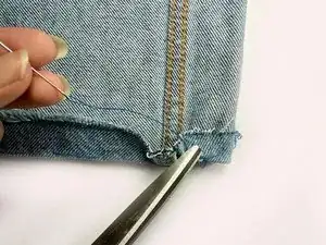 Отрежьте кусок нити в два раза длиннее отворота джинсов.