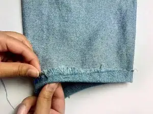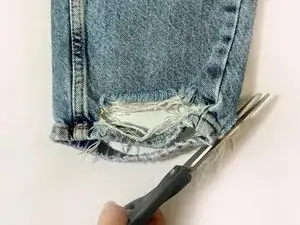 Отрежьте ножницами свободные нитки с низа каждой штанины.