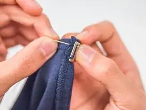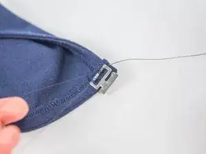 Проденьте иголку сквозь ткань, направляя её под застёжку.