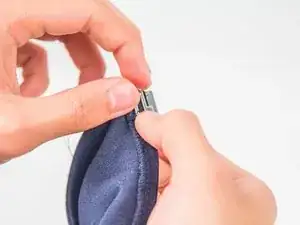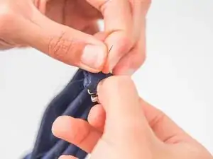 Полностью протяните иголку, пока нить не натянет застёжку плотно к ткани.