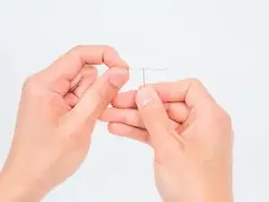Выпрямите нить и крепко удерживайте иголку.