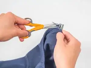 Возьмите ножницы и обрежьте лишнюю нить.