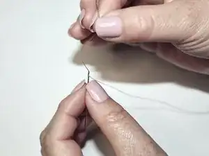 Чтобы завязать узел, протяните иглу через петлю и потяните.