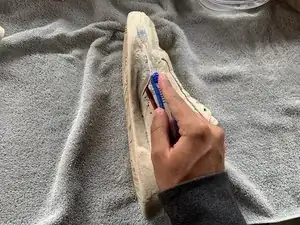 Почистите подошву кроссовок горизонтальными и вертикальными движениями.