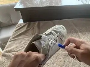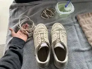 Извлеките шнурки из обеих кроссовок перед чисткой.