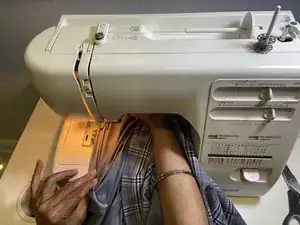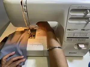 Переключите швейную машину на зигзагообразную строчку и обработайте ею место соединения, чтобы закрепить торчащие нитки.