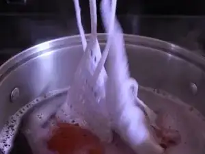 Налейте в кастрюлю из нержавеющей стали столько воды, чтобы одежда могла свободно двигаться.