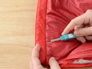 Вставьте распарыватель между двумя кусками ткани и аккуратно распорвите любые стежки между ними, которые могут удерживать ткани вместе.
