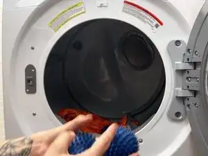 Добавьте 2–3 шарика для сушки, чистые теннисные мячи или свёрнутые носки.