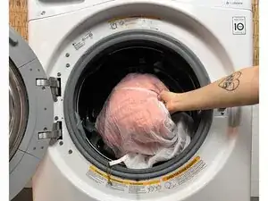 Если вы использовали Guppyfriend или мешок для стирки, выньте куртку перед сушкой.