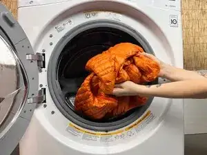 Достаньте куртку из стиральной машины и поместите её в сушильную машину.